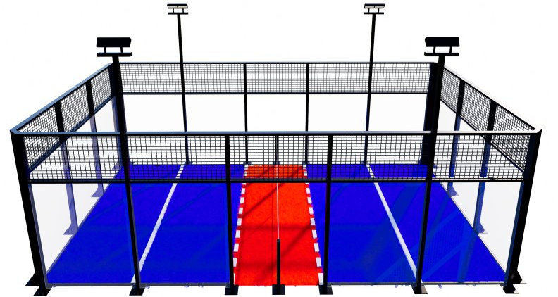 Финишная обработка включает электростатическое нанесение порошковой краски с последующей термообработкой в печи, что повышает износостойкость покрытия и придаёт конструкции аккуратный эстетичный вид. Предусмотрена система защиты от травм, а также возможность выбора цвета рам, что позволяет адаптировать корт под концепцию спортивного объекта или клуба.